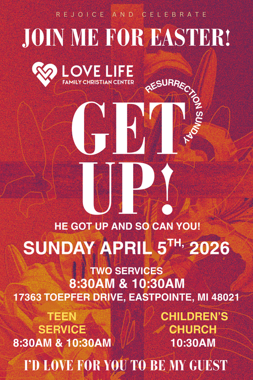 Hey! I’ve been praying for you the past couple weeks and wanted to invite you to Easter at Love Life Family Christian Center. It would mean a lot if you came and sat with me. Let me know if you’d like the details!